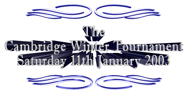 The Cambridgeshire Fencing Association in association with The Cambridgeshire Fencing Club is pleased to announce the results of the Cambridge Winter Tournament 2003.